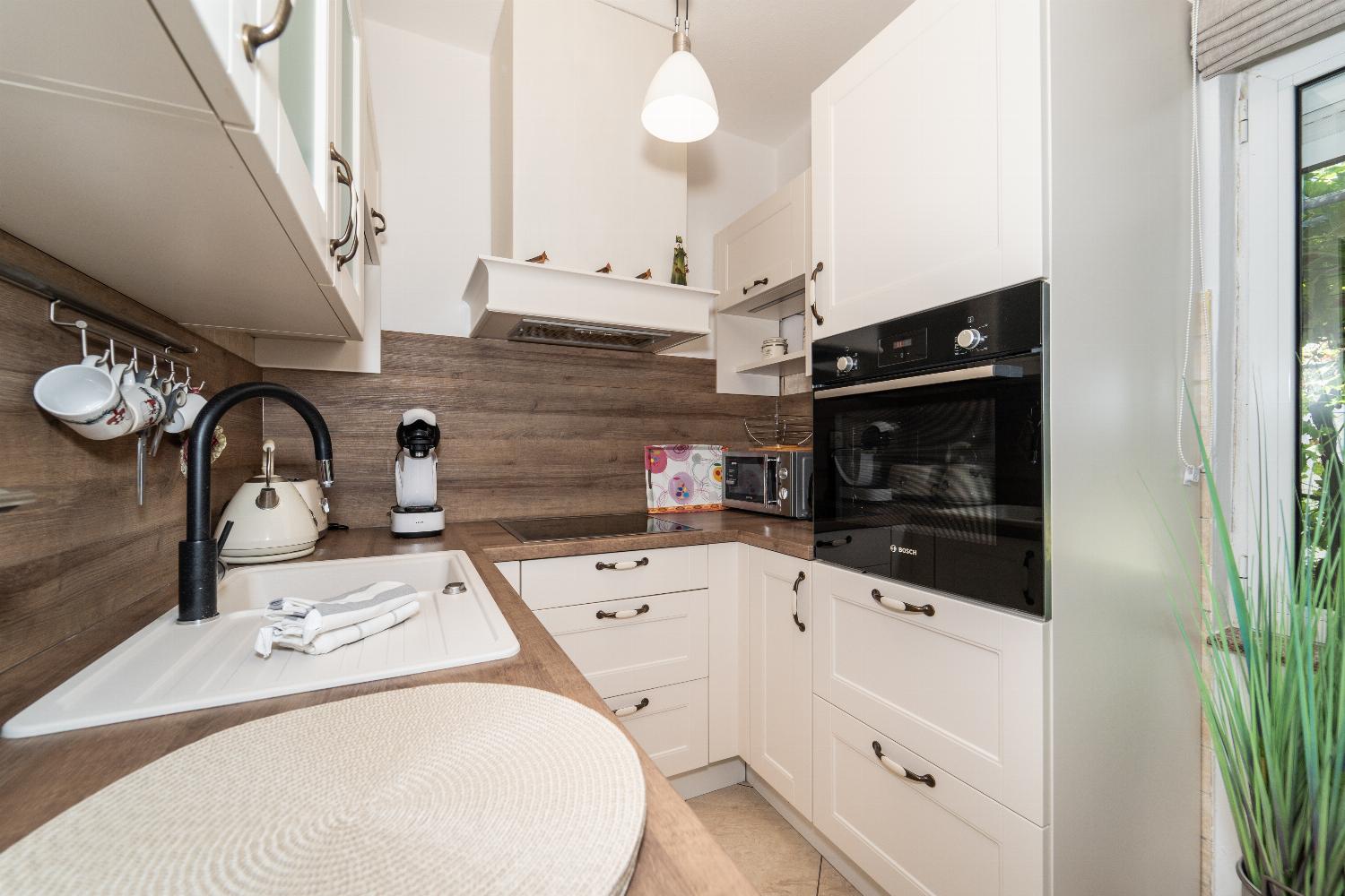 The living room of Villa Adria is a comfortable and inviting space, equipped with air conditioning for your comfort. It features a cosy dining area, comfortable sofas, a television, and free Wi-Fi, making it an ideal spot for relaxation. On warm days, patio doors lead directly to the pool terrace. The kitchen is also air-conditioned and well-equipped with modern appliances. You will find a toaster, coffee maker, washing machine, dishwasher, microwave, refrigerator, stove, hob, and oven, ensuring that you have everything you need for meal preparation. Additionally, there is an outdoor barbecue for enjoying meals al fresco. Villa Adria offers three comfortable bedrooms, each furnished with a double bed, providing ample space for guests. There is also an extra single sofa bed available for additional accommodation. The villa features two family bathrooms, each equipped with a shower and W/C for convenience.