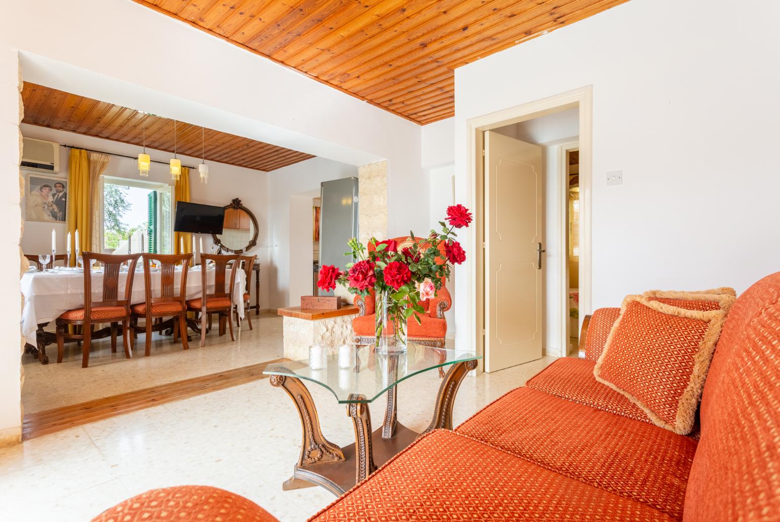 Villa Constant is located in Agia Marina, Paphos District. This detached villa offers air-conditioning, Free Wi-Fi and sleeps up to 7 people (6 Adults and 1 Child) with 3 Bedrooms and 3 Bathrooms. There is a private south facing pool with barbecue and lovely sea views. It is also within walking distance to the beach!