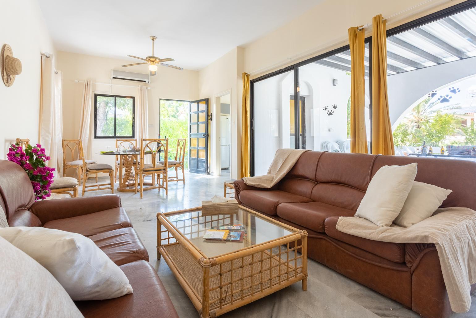 Villa Windflower comprises four bedrooms, each designed for comfort. Bedroom 1 features air-conditioning and a double bed, complete with its own en suite bathroom. Bedrooms 2 and 3 are both air-conditioned as well and equipped with two single beds each, making them ideal for guests. Bedroom 4 also contains two single beds and includes an en suite bathroom for added convenience.