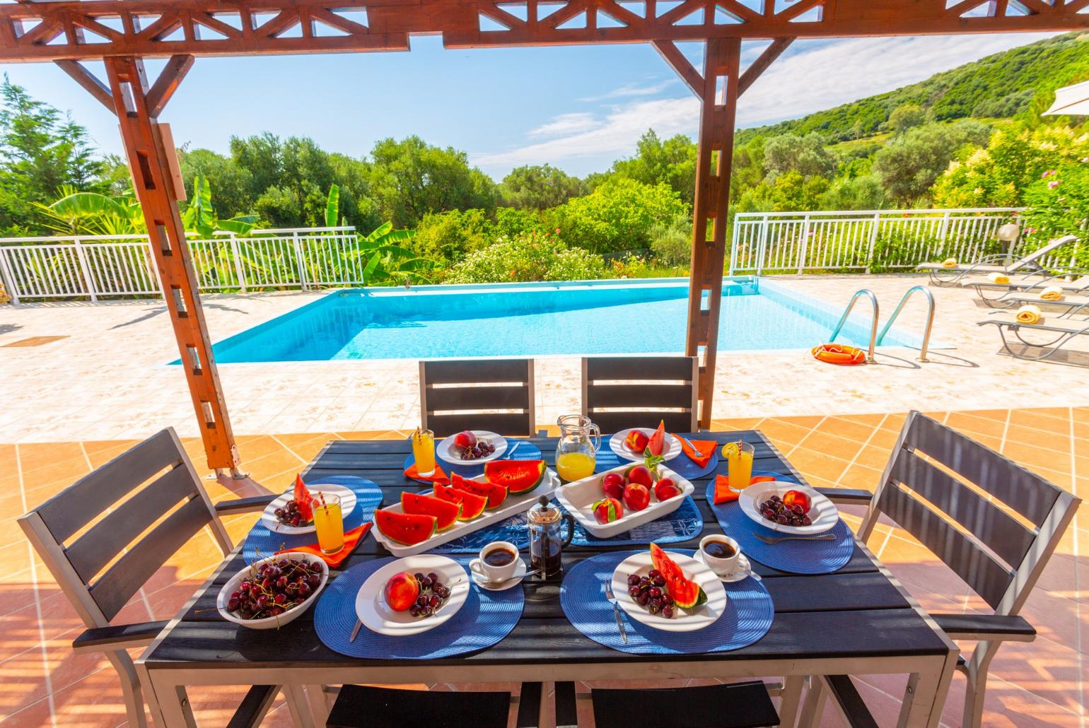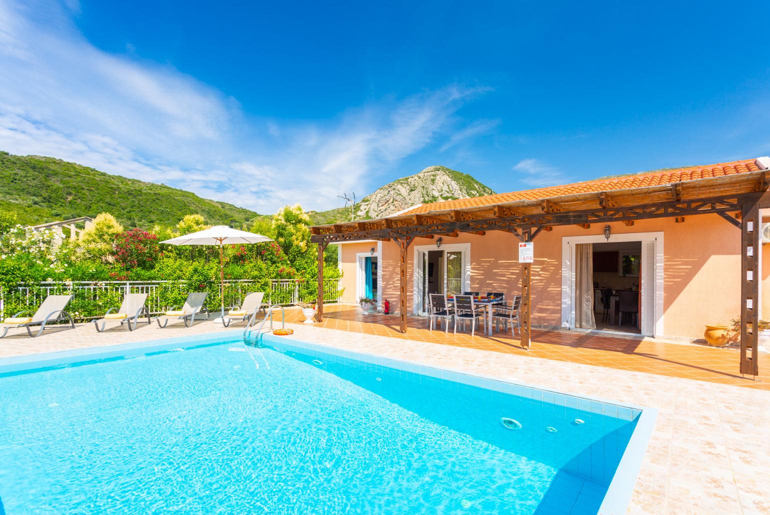 The private pool measures a generous 7.5m by 4.5m, providing ample space for relaxation and fun in the sun.