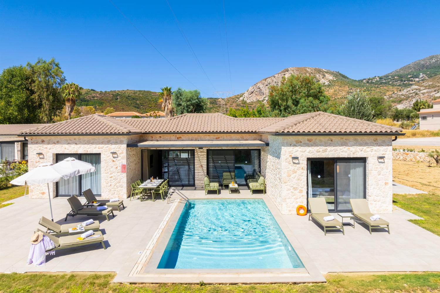 Villa Sally is located in Katelios, Kefalonia and sleeps up to six guests with three bedrooms and three bathrooms. There is also a private pool with a barbecue and stunning sea views.