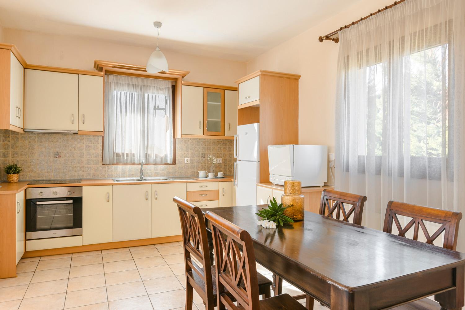 Villa Irene features three comfortable air-conditioned bedrooms. The first bedroom is equipped with a double bed and comes with an en suite bathroom for added convenience. The second bedroom contains two single beds and also has its own en suite bathroom. Finally, the third bedroom offers two single beds, ensuring plenty of space for guests to relax.