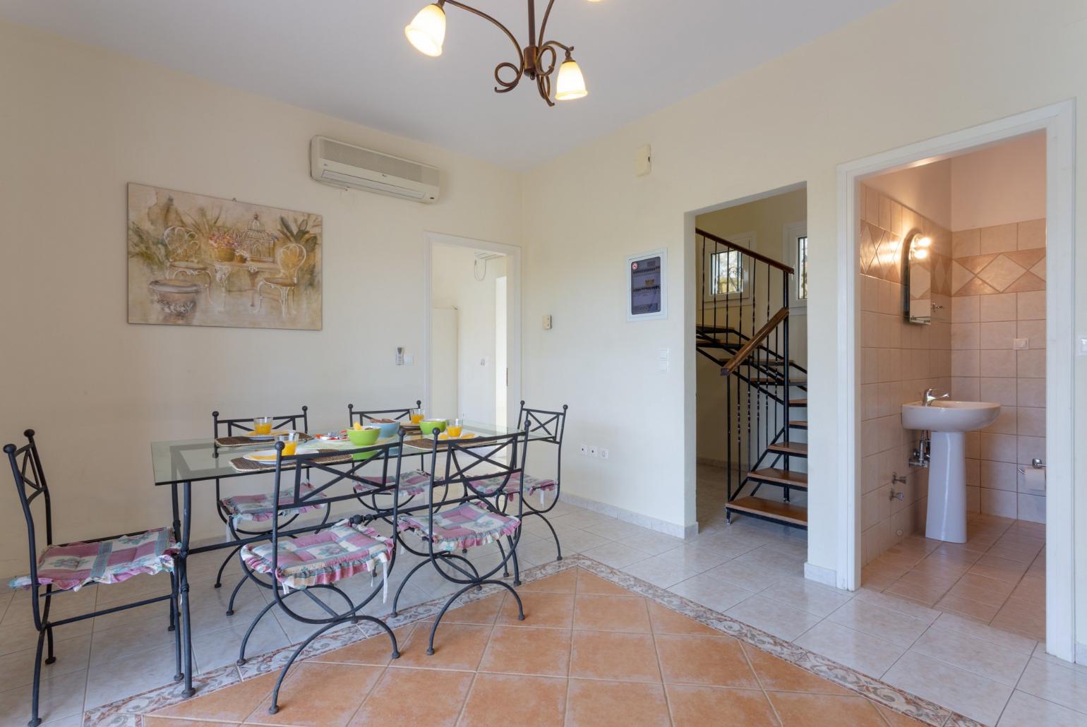 The villa is designed over two floors. The living room, located on the second floor, is air-conditioned and features a dining area, comfortable sofas, a DVD player, satellite TV, and free Wi-Fi. Patio doors lead to the pool terrace, where you can enjoy beautiful views and lovely weather.