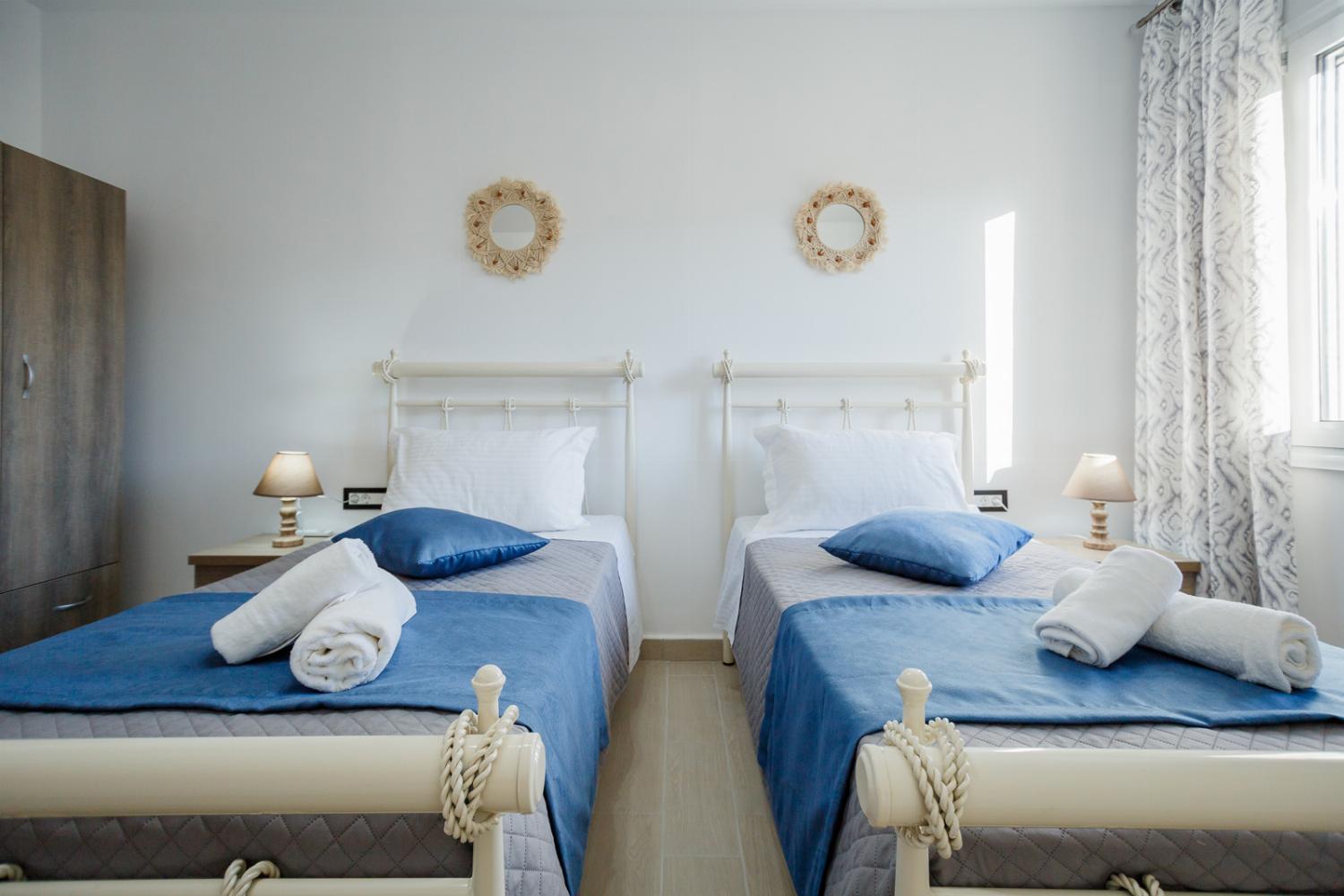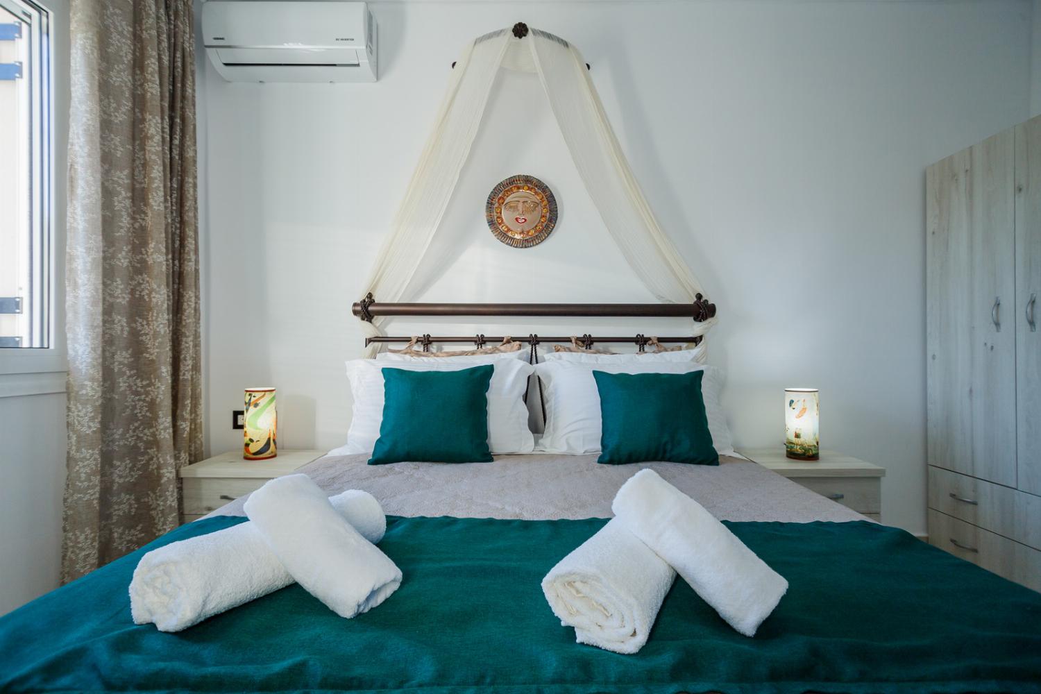 Villa Zetma offers two air-conditioned bedrooms. The first bedroom is furnished with a cozy double bed, while the second bedroom contains two single beds. Additionally, there is a single sofa bed available for extra sleeping arrangements.The villa includes a family bathroom that features a shower and W/C, ensuring comfort and privacy for guests. For relaxation, the swimming pool area is complemented by sun beds, providing the perfect spot to soak up the sun.