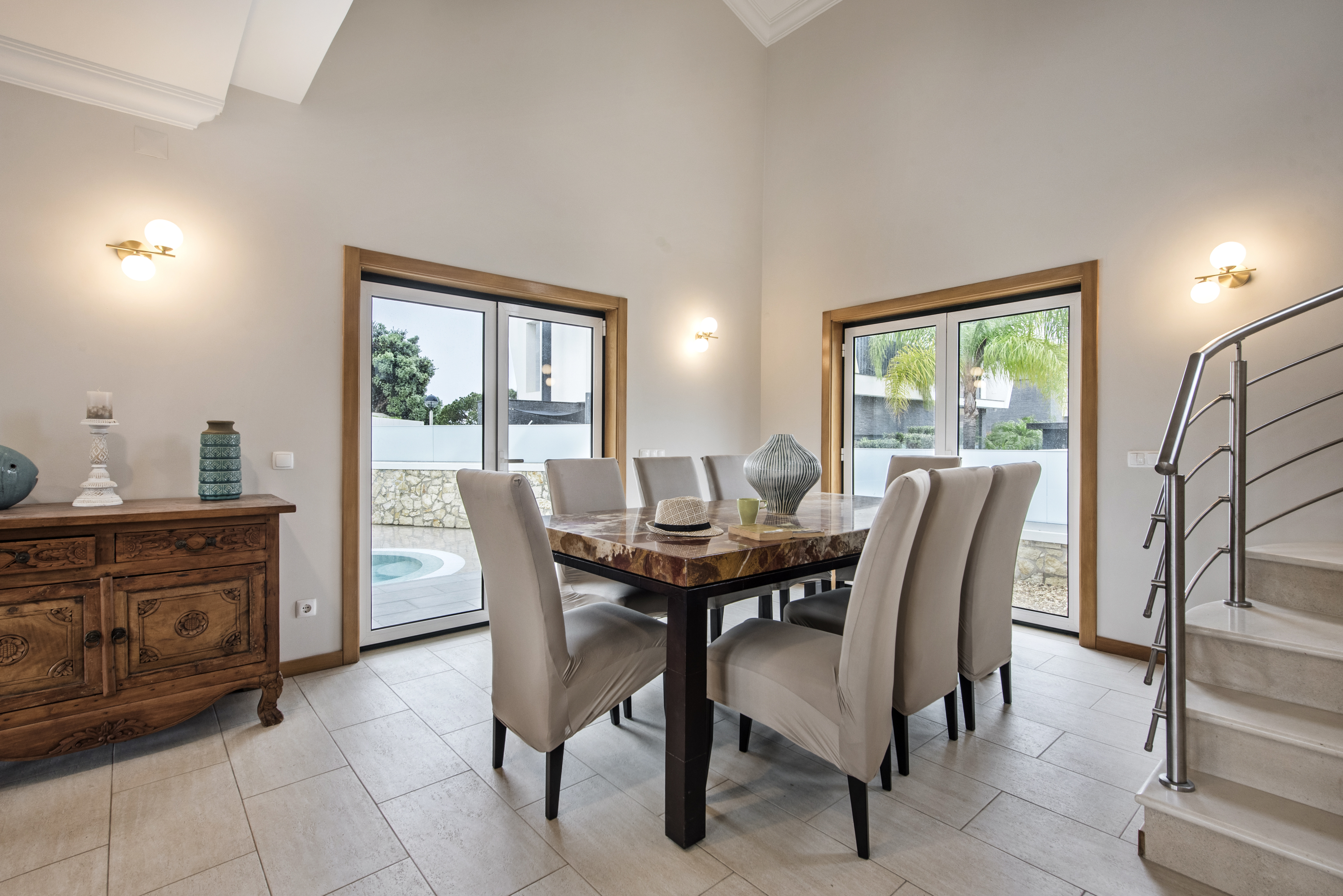 Living Spaces: Fully fitted kitchen, spacious lounge and dining area with patio doors opening directly onto the pool and terrace.