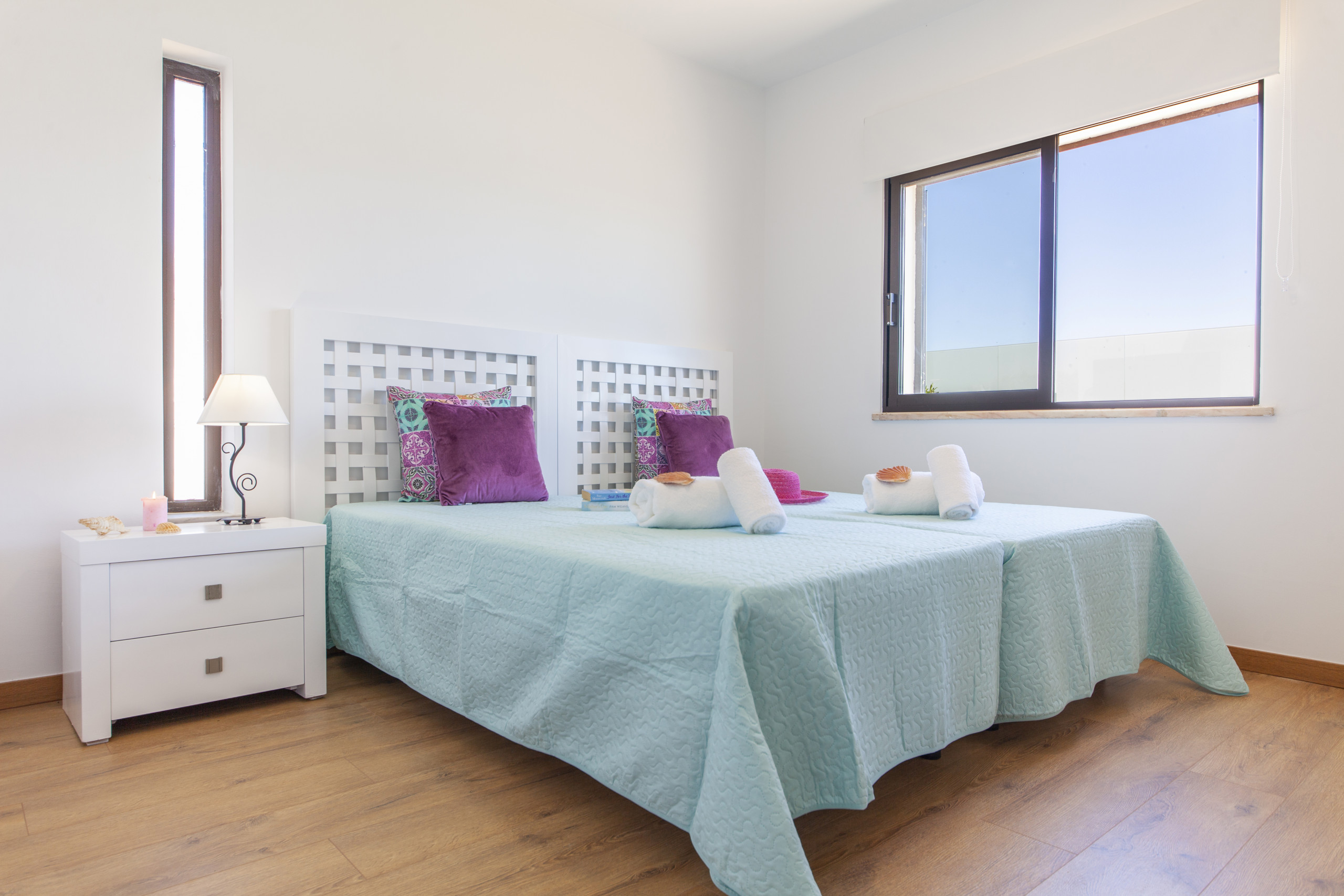 Inside, there are 3 bedrooms (with the option of adding 2 more beds for an additional cost), all with air conditioning. The first floor is a twin bedroom with an en-suite bathroom and has access to a lovely south-facing terrace which has stunning countryside views. The other 2 bedrooms are on the ground floor, one being a double bedroom with en-suite bathroom and the other being a twin bedroom. An additional bathroom is also available on this floor.