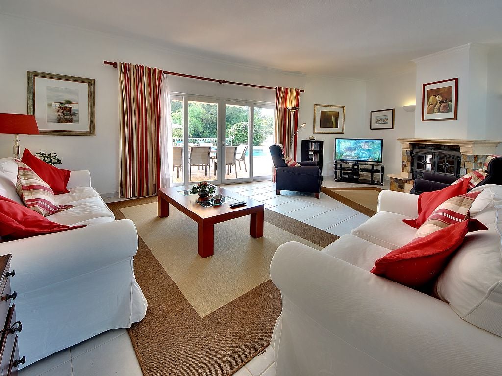 This 4-bedroom Villa near Alvor in the Algarve, Portugal, accommodates up to 8 adults, with an option for an additional guest. It features modern amenities, a heated swimming pool, Jacuzzi, and recreational facilities in a private garden. The villa is a 15-minute walk from Penina Golf Resort and close to Portimão and Alvor’s beach.