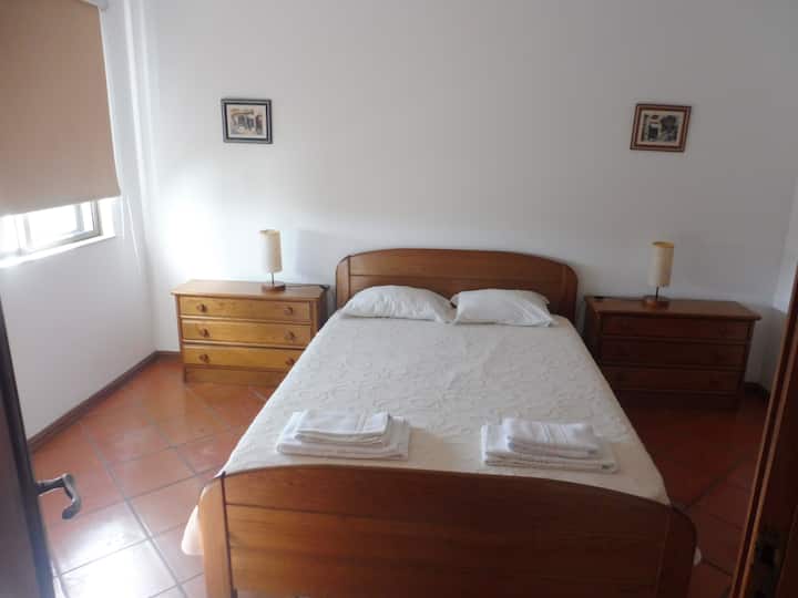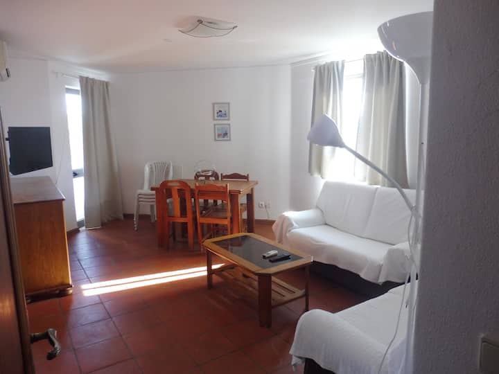 The apartments offer 2 bedrooms, one of them in a double bed and one with single beds, 1 bathroom, a fully equipped kitchen, living and dining room, balcony and public outdoor parking. The living and dining rooms are furnished with two comfortable sofas, a TV and wooden dining table that seats 4 guests.