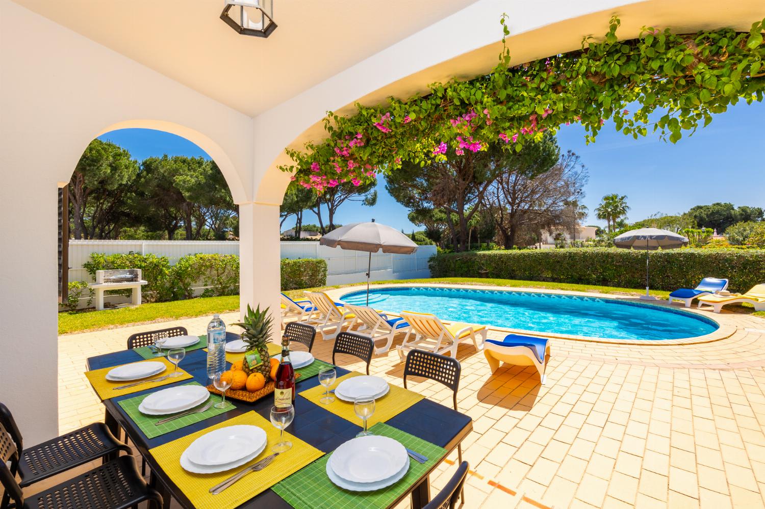 Additional Pool Features: Pergola, Sun Beds and Poolside Dining Area.