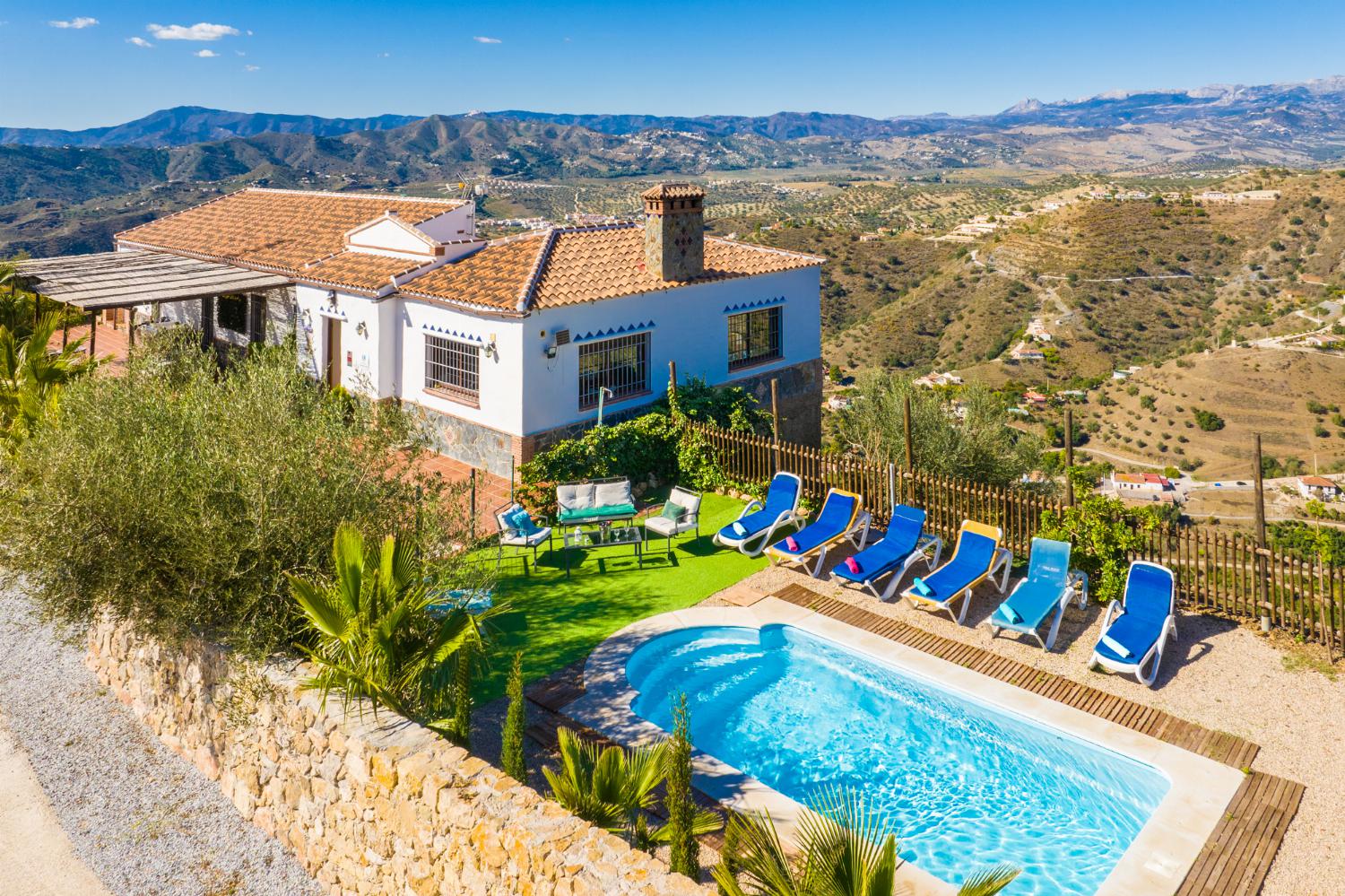 Villa Teresca is a beautiful villa located in the tranquil, picturesque countryside of Malaga. With stunning views, serene environment, and private pool this villa is the perfect property for a relaxing retreat with a group of friends or family!
