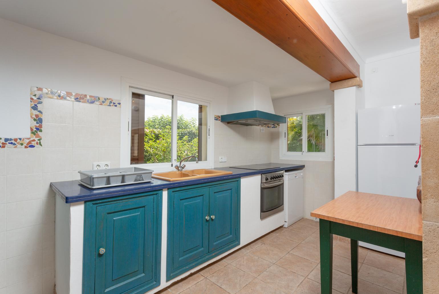 The kitchen is fitted with all essential appliances to enhance the culinary experience. It includes a toaster, coffee maker, granite work surface, washing machine, dishwasher, microwave, refrigerator, stove/hob, and oven. Additionally, there is an outdoor barbecue facility, which promotes enjoyable al fresco dining opportunities.