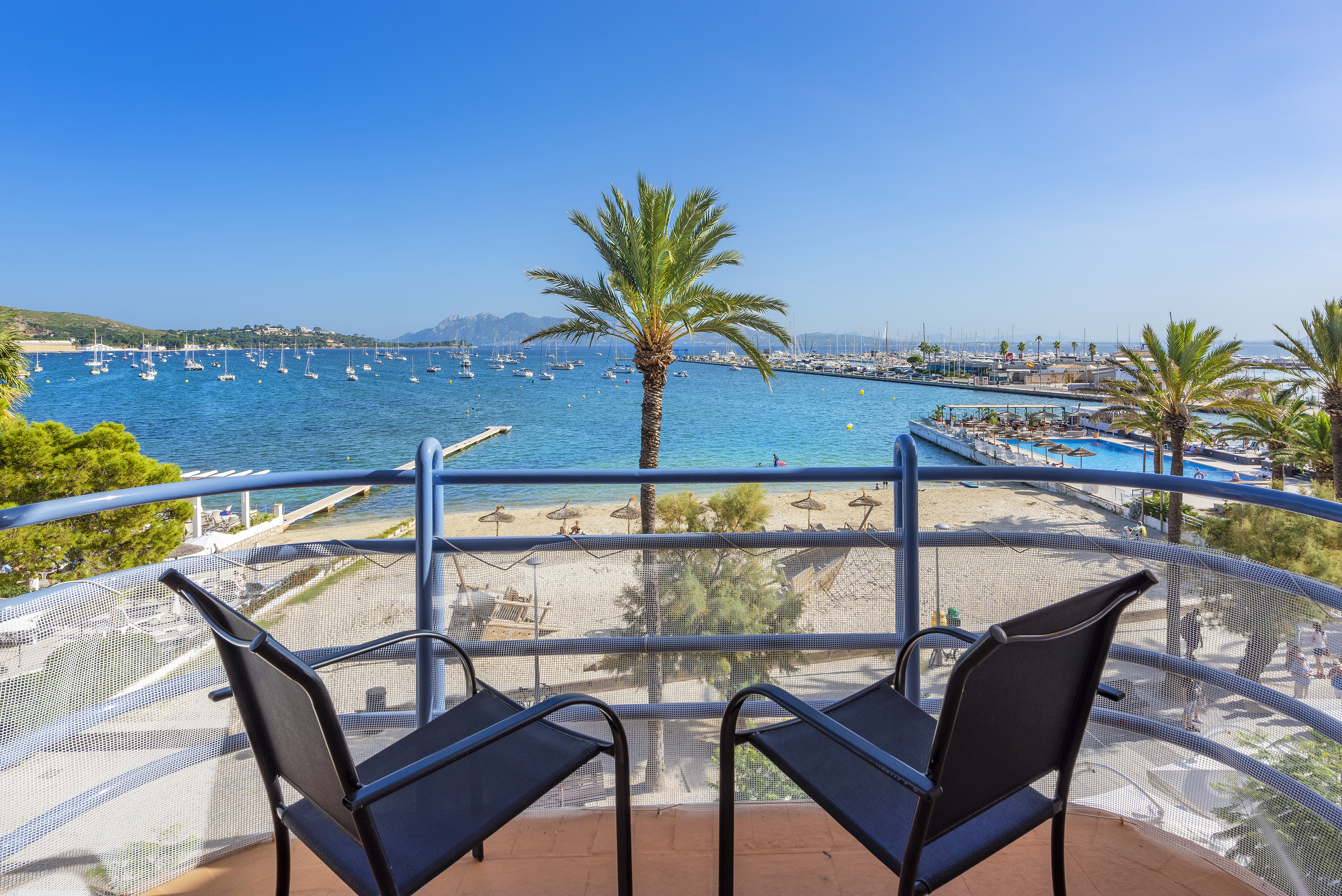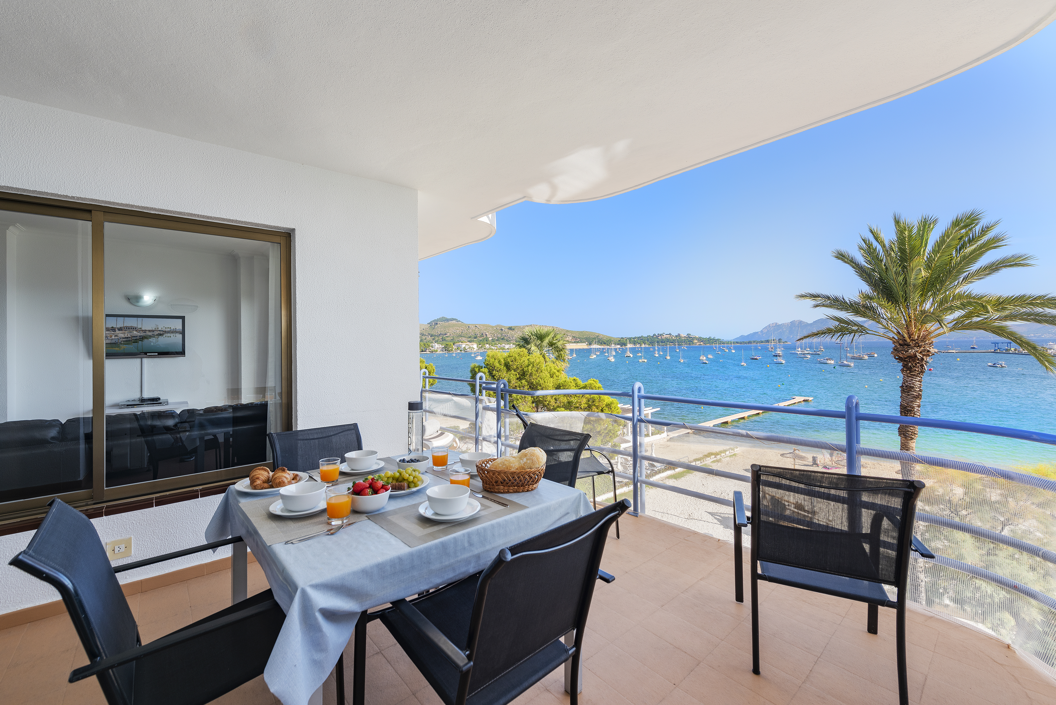 Nitas apartment is a fully equipped second-floor apartment that is remarkable for its prime location. A lift provides easy access to the property. Positioned right on the beachfront of Puerto Pollensa, the terrace offers stunning views of the bay, framed by mountains in the distance.