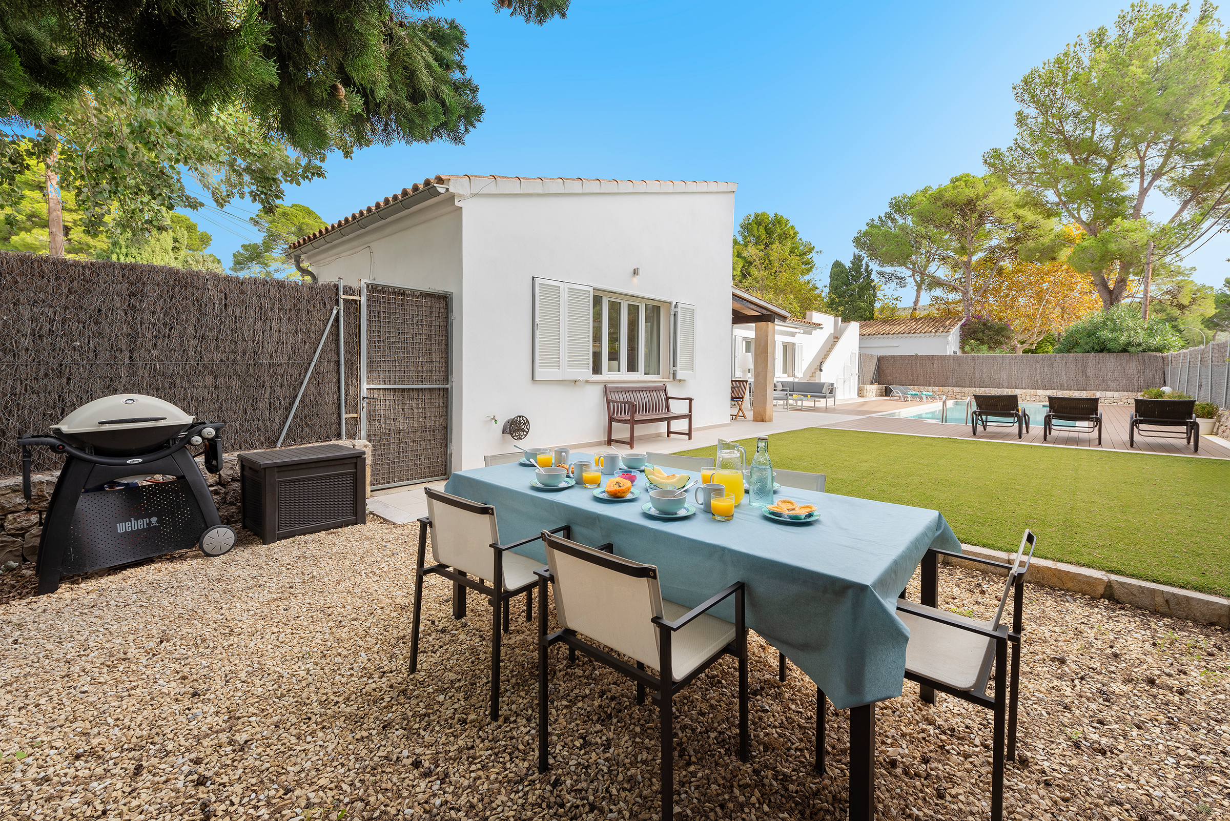 The villa includes a private pool for your exclusive use, along with sunbeds for everyone. There’s also a chill-out area perfect for reading your favorite book or enjoying a sundowner.