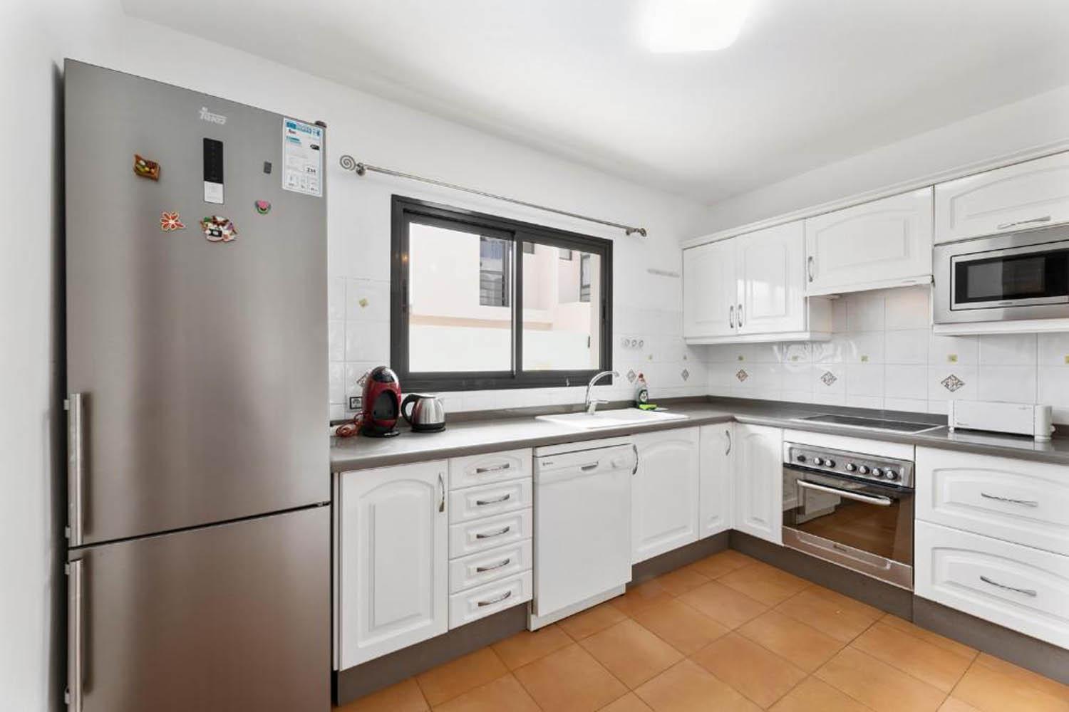 Inside, the living room has a TV and comfortable sofas and the kitchen is fully equipped with the necessities such as: a microwave, refrigerator, kettle and oven. Two of the three bedrooms are twin rooms and the master bedroom is a double room with an en suite bathroom.