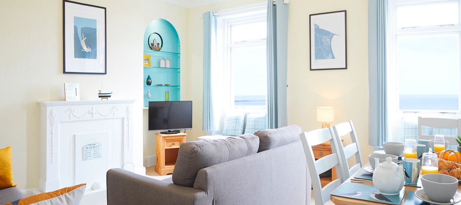 Sea View at The Crescent is a two bedroom apartment with beautiful sea views over the bandstand on Crescent Gardens. Located on the second floor, the extra height gives uninterrupted views, perfect for people watching from the window seat! Located just a five minute walk from both the town and the beach.