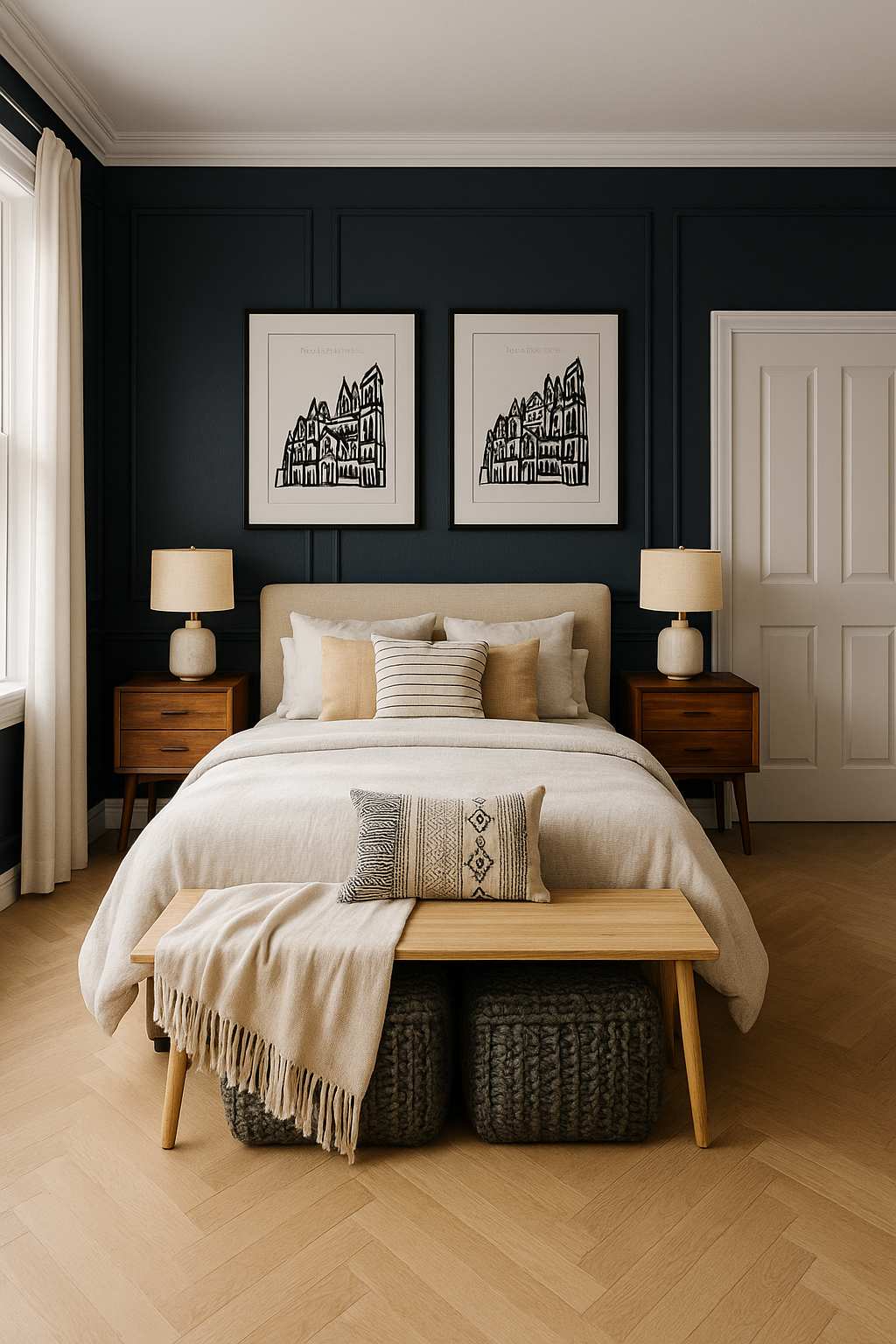 The third floor has a large King sized bedroom, flooded with natural light, with original 1800’s fireplace and curtain ring, with classic panelling and LED lights.